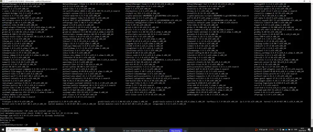 After updating, verify the installation of the yum-utils package. Run sudo yum install yum-utils to check and install it if necessary. After confirming the package is installed, proceed to add the Docker repository.