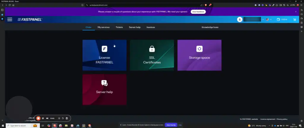 At cbfastpanel.directorder, acquire a FastPanel license. You have the option of starting with a free license or selecting a paid plan. Add your chosen license to the cart, input your server’s IP address, and complete the checkout process to finalize your account setup.