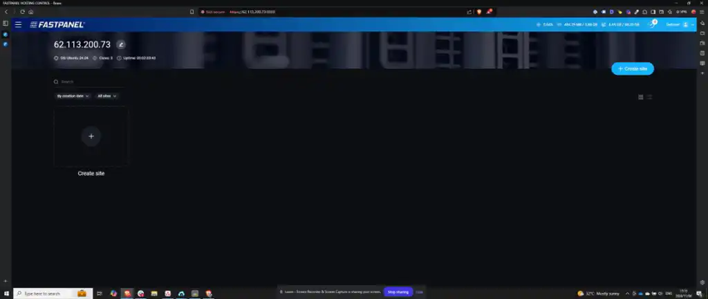 Congratulations, you have successfully set up FastPanel on your VPS. You are now ready to create and manage sites on your server.
