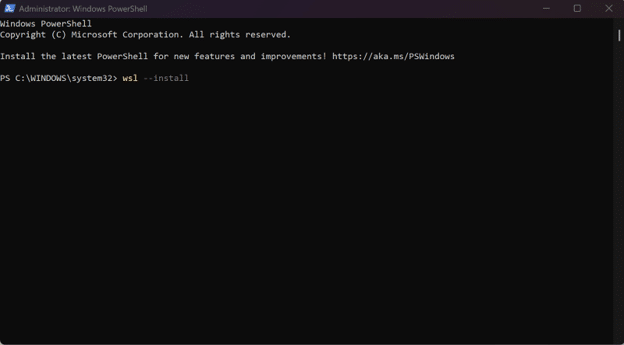 This ensures any Linux distribution you install will automatically use WSL 2 rather than the older WSL 1 architecture.