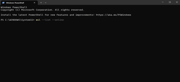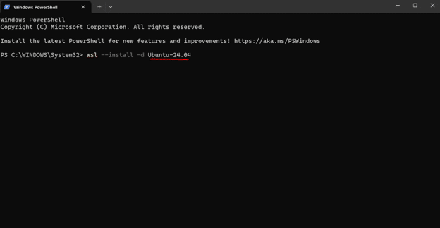 Replace Ubuntu-24.04 with any distribution name from wsl –list –online.
