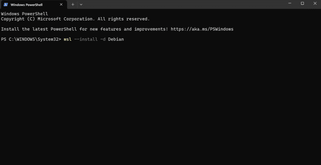 Replace Debian with any distribution from the list (e.g., Ubuntu-24.04, kali-linux, openSUSE-Leap-15.5).