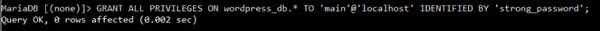 After granting privileges, exit MariaDB by typing EXIT;